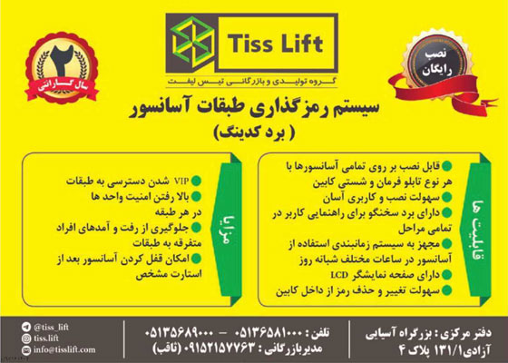 آگهی سیستم رمزگذاری طبقات آسانسور در روزنامه خراسان چاپ 26 دی 1397 منتشر شد.